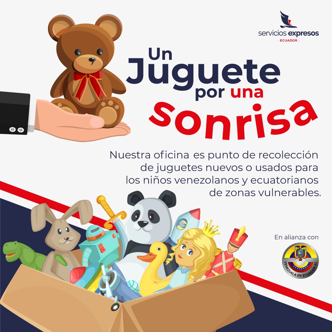 Nuevamente en alianza con servicios expresos MRW y la asociación Venezuela en Ecuador AC se ha confirmado la recolección de juguetes para este año 2023, donde queremos beneficiar a niños niñas y adolescentes de bajos recursos sin distingo de nacionalidad en especial con enfermedades catastróficas y en situación de pobreza extrema.